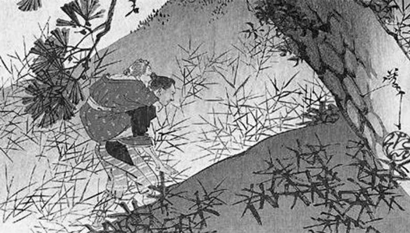 Justo al atardecer, al terminar su jornada laboral, tomó una cantidad de arroz integral, el principal alimento de los pobres, y lo cocinó, lo secó y lo ató en un paño cuadrado, que colgó en un bulto alrededor de su cuello junto con una calabaza llena de agua fresca y dulce. Luego cargó a su desamparada y anciana madre sobre su espalda y emprendió su penoso viaje montaña arriba. El camino era largo y empinado; el estrecho camino era cruzado una y otra vez por numerosos senderos hechos por cazadores y leñadores. En algún lugar, se perdieron y confundieron, pero él no les prestó atención. Un camino u otro, no importaba. Siguió adelante, ascendiendo a ciegas, siempre hacia la alta y desnuda cumbre de lo que se conoce como Obatsuyama, la montaña del “abandono de los ancianos”.
